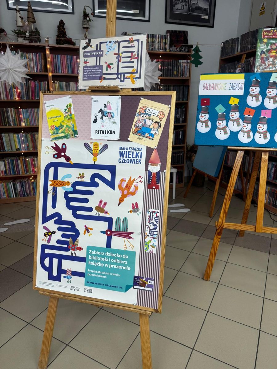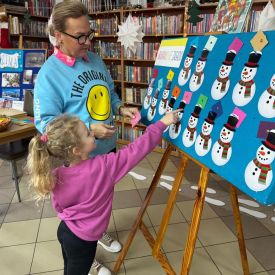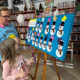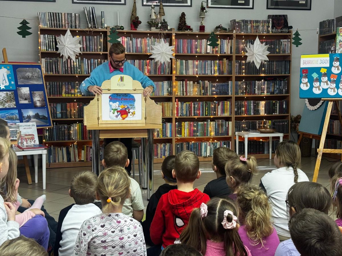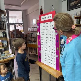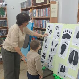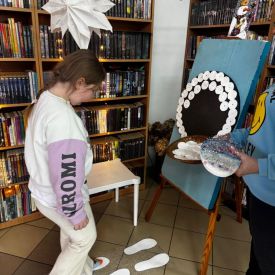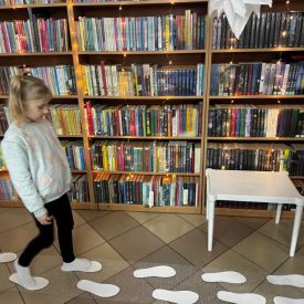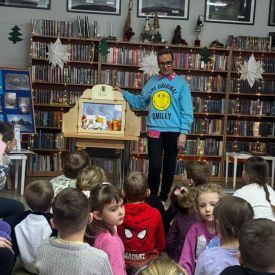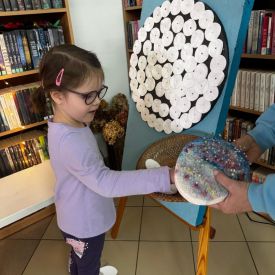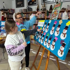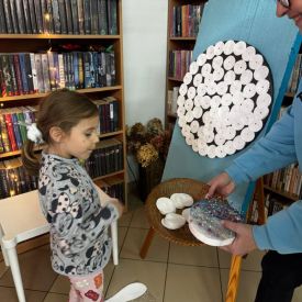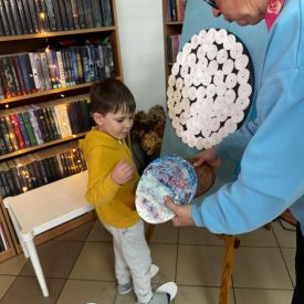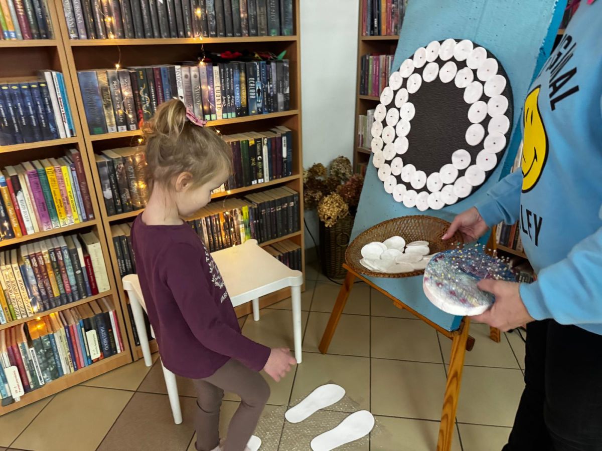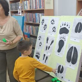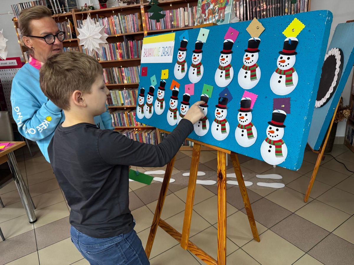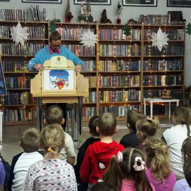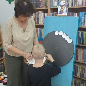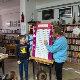 Przedszkolaki z grupy Sówek i Pszczółek uczestniczyły w zajęciach bibliotecznych o tematyce zimowej w Miejskiej Bibliotece Publicznej Filia nr 2 w Kielcach. Z uwagą wysłuchały opowiadania „Zima w lesie” czytanego przez panie bibliotekarki. Następnie brały udział w zabawach: rozpoznawały ślady zwierząt leśnych, znajdywały i odczytywały wyrazy na tablicy związane tematycznie z zimą. Najwięcej radości sprawiło dzieciom układanie sylwety głowy bałwanka z płatków kosmetycznych i z przysłoniętymi oczami przypinanie bałwankowi elementów. Po zajęciach przedszkolaki z zainteresowaniem oglądały księgozbiór dla dzieci.