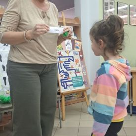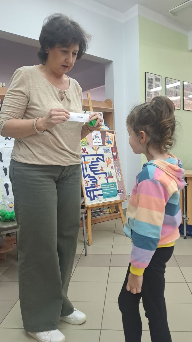 Panie bibliotekarki zachęcały dzieci do odwiedzania biblioteki w celu zapisania się i wypożyczania książeczek do domu.