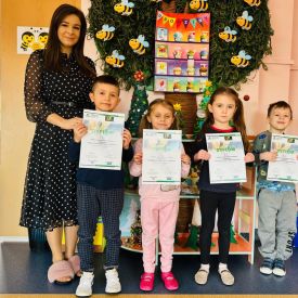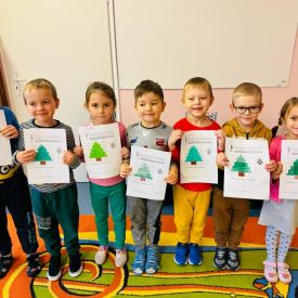 Dzieci poznały “Podłaźniczkę” czyli ozdobę świateczną z dawnych lat. Na podsumowanie przedszkolaki musiały wykonać choinkę, którą chciałyby podarować Mikołajowi Kopernikowi w podzięce za jego osiągnięcia. Dzieci świetnie poradziły sobie z zadaniami, podczas realizacji modułu wykazały się sprytem, dużym zaangażowaniem i kreatywnością przez co zostały nagrodzone wspaniałymi dyplomami, które wręczyła im Pani Dyrektor.