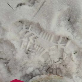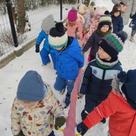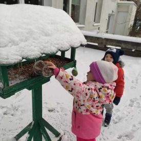 Dzieci z grupy Biedronek pewnego zimowego dnia wybrały się na spacer, by poobserwować przyrodę w zimowej szacie. Przedszkolaki poszukiwały śladów na śniegu. Bystrym okiem wypatrzyły odciski butów, samochodów, sanek, traktora, psa ale największe wrażenie zrobiły na nich ślady łapek skrzydlatych przyjaciół wokół karmnika. Maluchy jako prawdziwi przyjaciele przyrody nie zapomniały dosypać ziarenek do karmników zawieszonych w ogrodzie przedszkolnym. Podczas wyjścia przedszkolaki wsłuchiwały się w śpiew ptaków, udało się nawet spotkać gile skaczące po ośnieżonych gałązkach.