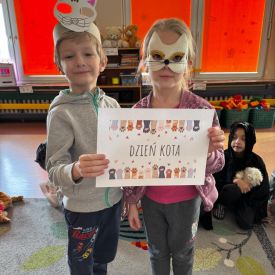 17 lutego w naszym przedszkolu obchodziliśmy Dzień Kota. Przedszkolaki w tym dniu przebrały się za kotki szare, bure lub pstrokate. W przedszkolu zrobił się po prostu koci świat.