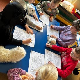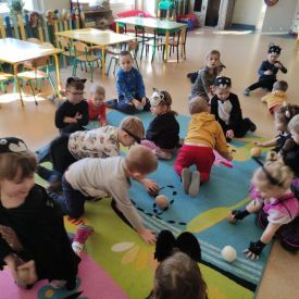 Wszystkie aktywności w ciągu dnia nawiązywały do kocich zwyczajów. Dzieci we wszystkich grupach brały udział w kocich zabawach przy wesołej kociej muzyce, rozwiązywały kocie zagadki... jednym słowem panowała iście kocia atmosfera.