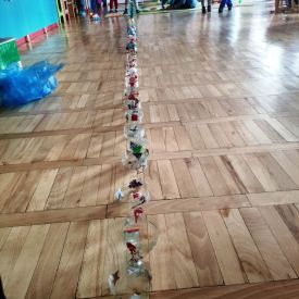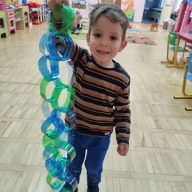 Nasze przedszkole wzięło udział w konkursie zorganizowanym przez Rejonowe Przedsiębiorstwo Zieleni w Kielcach na najdłuższy świąteczny łańcuch recyklingowy. Do jego wykonania zostały użyte kółka, wycięte z plastikowych butelek. Po złączeniu powstał długi łańcuch, który mierzył 62 metry, a łączna długość z całych Kielc wyniosła 6107,33 metra.