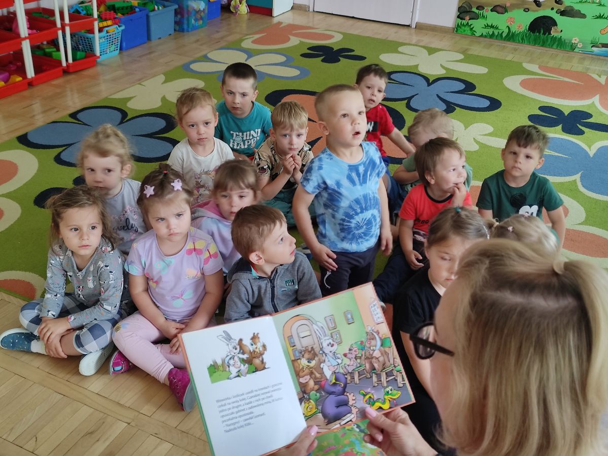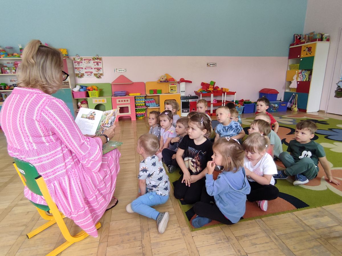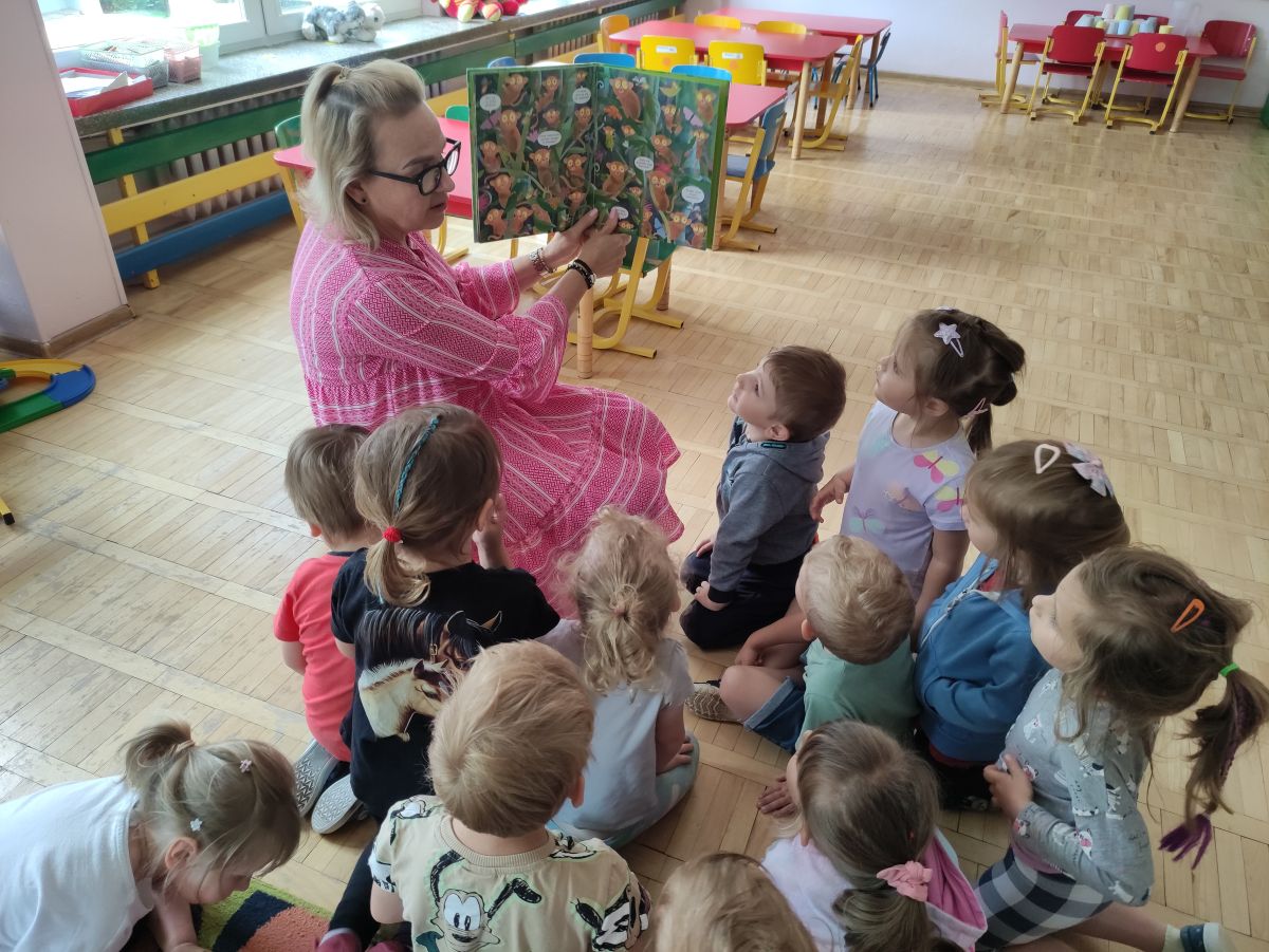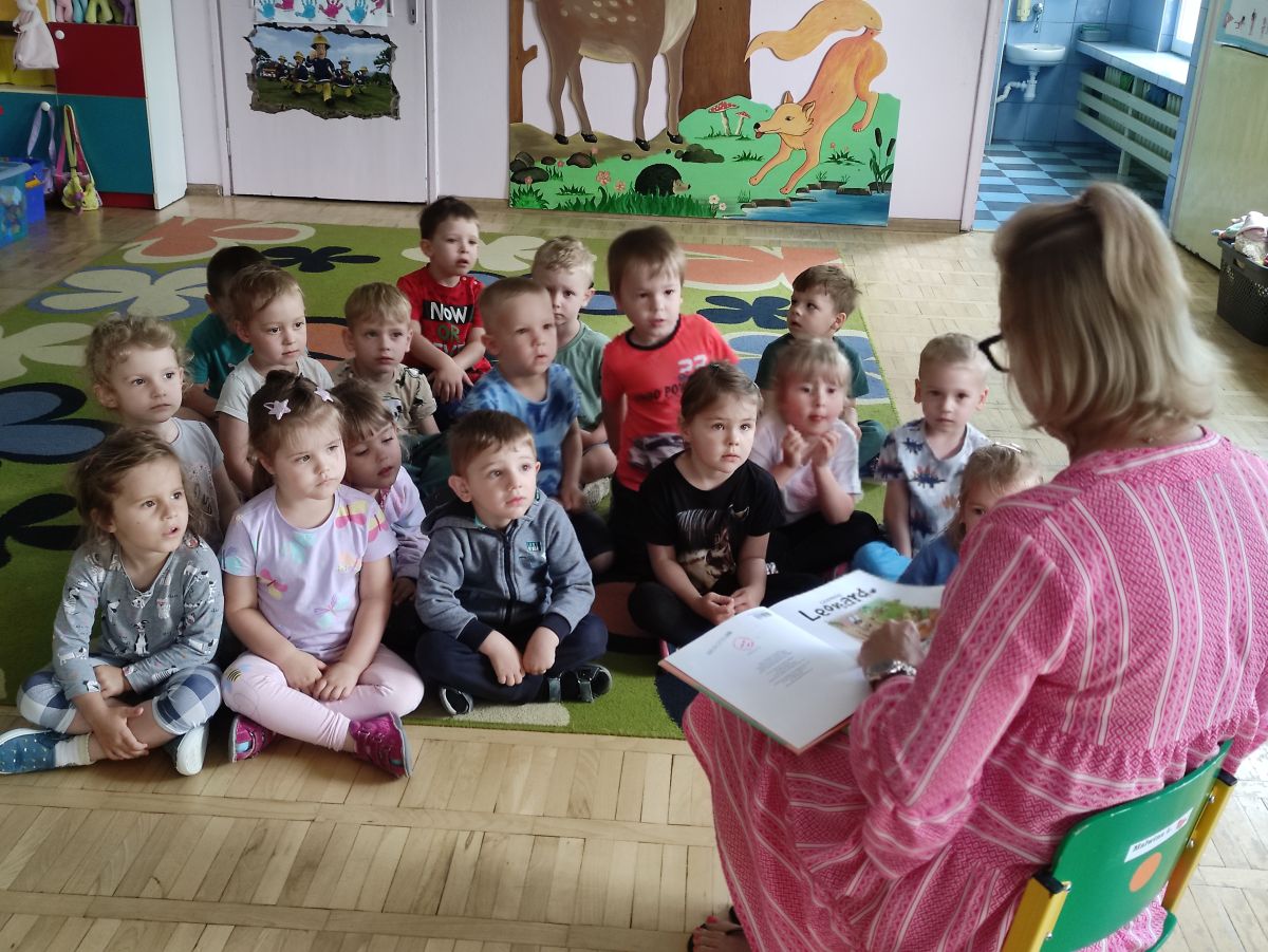 14 czerwca dzieci z grupy Biedronek gościły w swojej sali Panią Ewę z pobliskiej Biblioteki Miejskiej Publicznej. Bibliotekarka w ramach Ogólnopolskiej Akcji Cała Polska Czyta Dzieciom przeczytała książkę z serii "Czarodziej Leonard i stary dąb". Przedszkolaki z dużym zainteresowaniem wysłuchały przygody drzewa i zrozumiały jaką moc mają słowa: dziękuję, przepraszam...