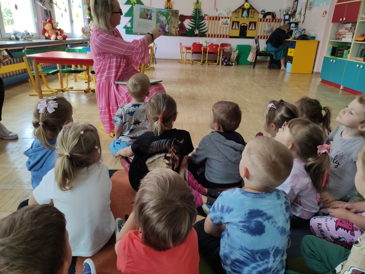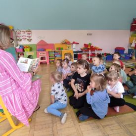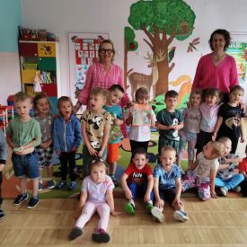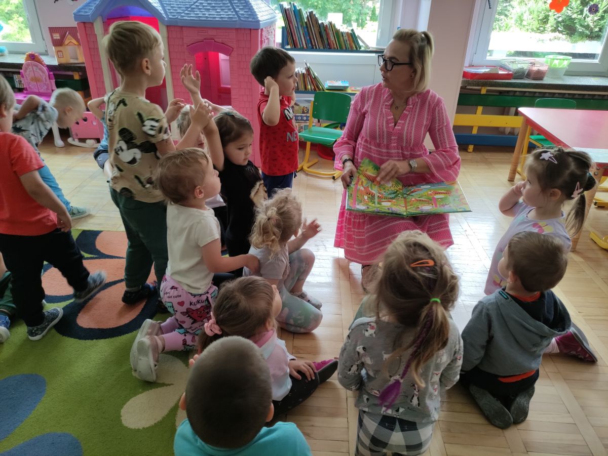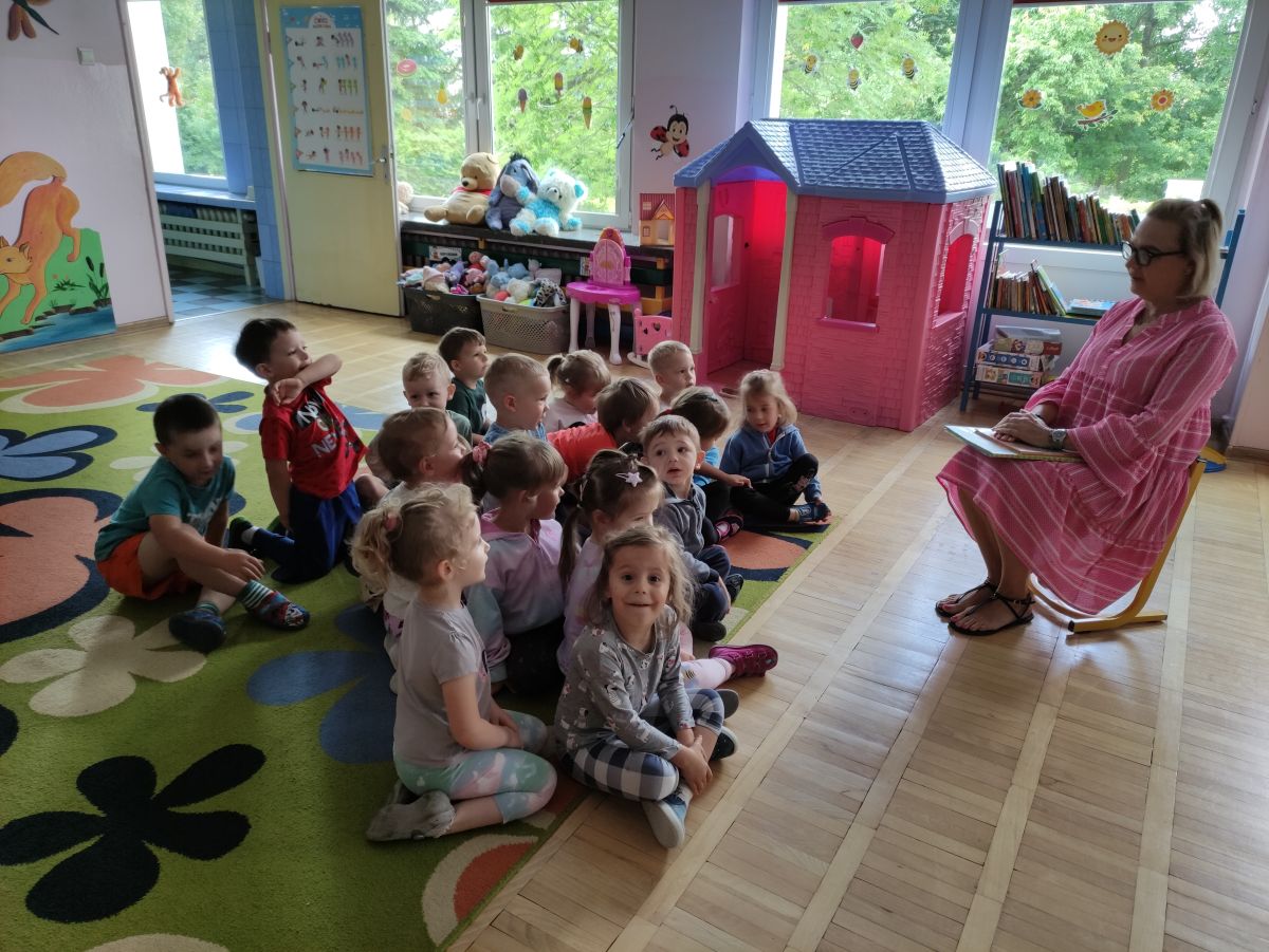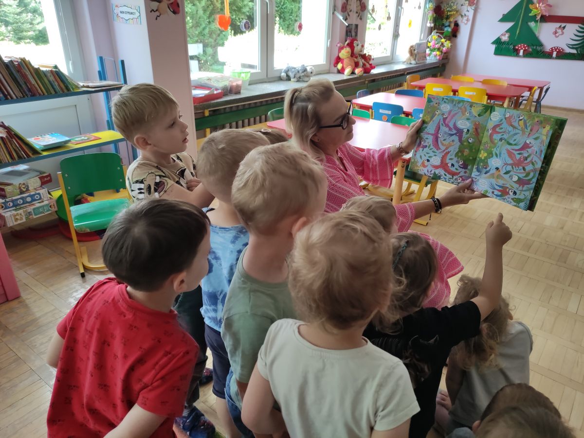 14 czerwca dzieci z grupy Biedronek gościły w swojej sali Panią Ewę z pobliskiej Biblioteki Miejskiej Publicznej. Bibliotekarka w ramach Ogólnopolskiej Akcji Cała Polska Czyta Dzieciom przeczytała książkę z serii "Czarodziej Leonard i stary dąb". Przedszkolaki z dużym zainteresowaniem wysłuchały przygody drzewa i zrozumiały jaką moc mają słowa: dziękuję, przepraszam...