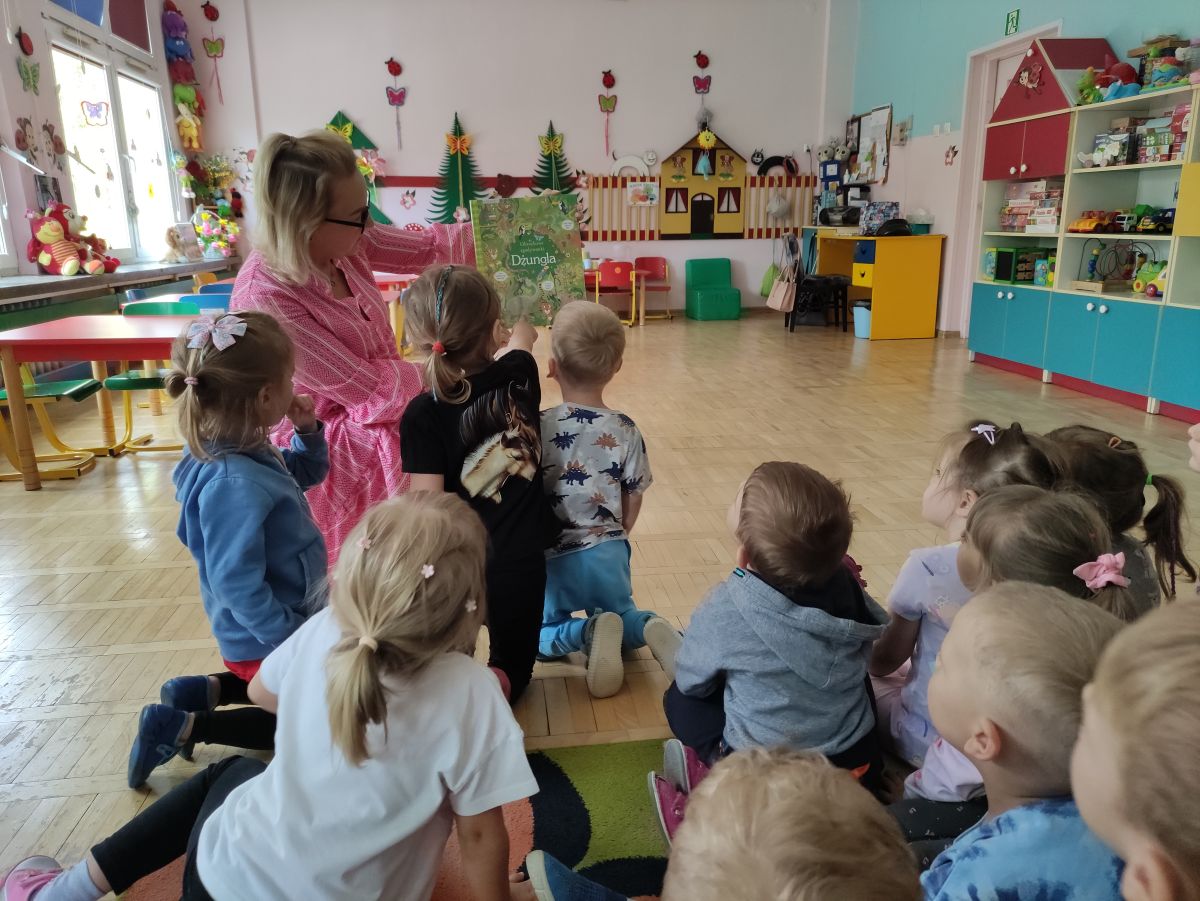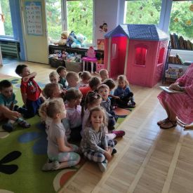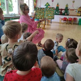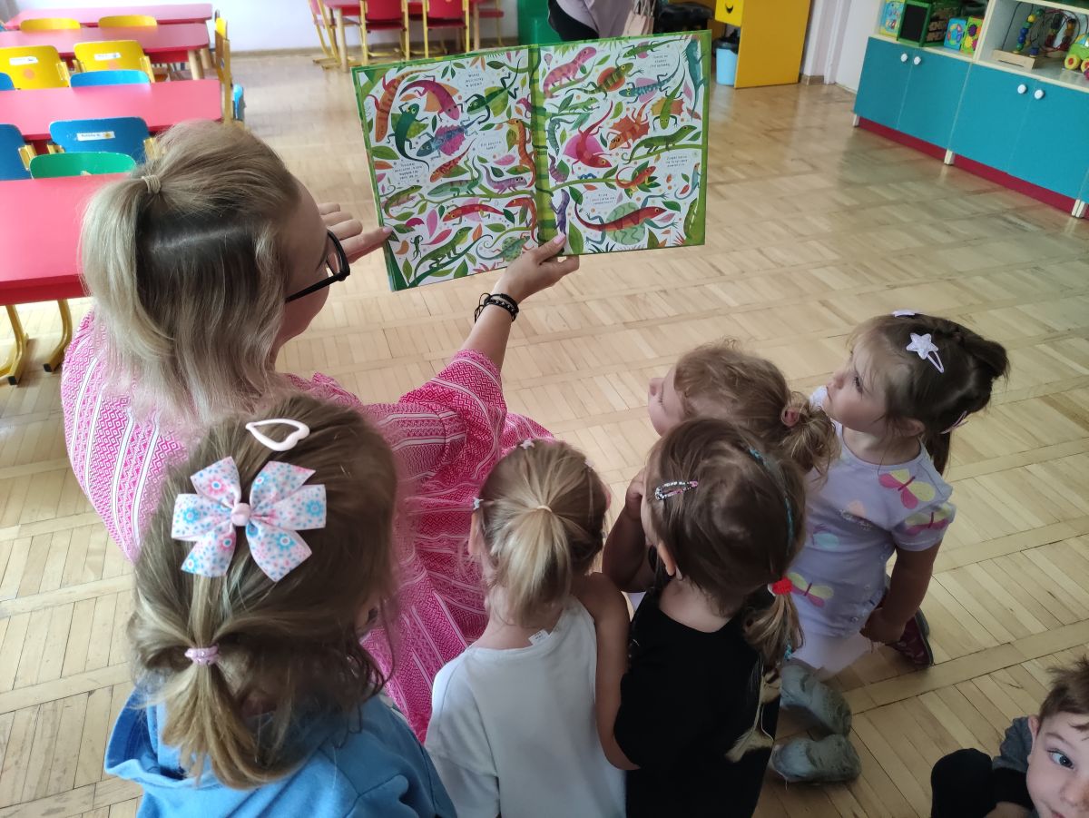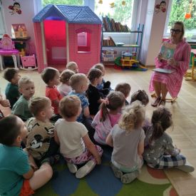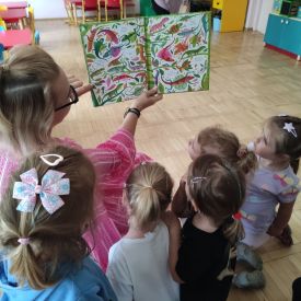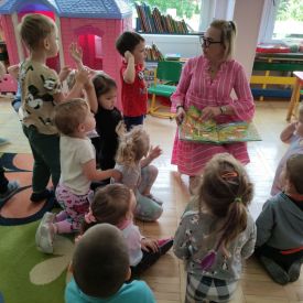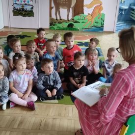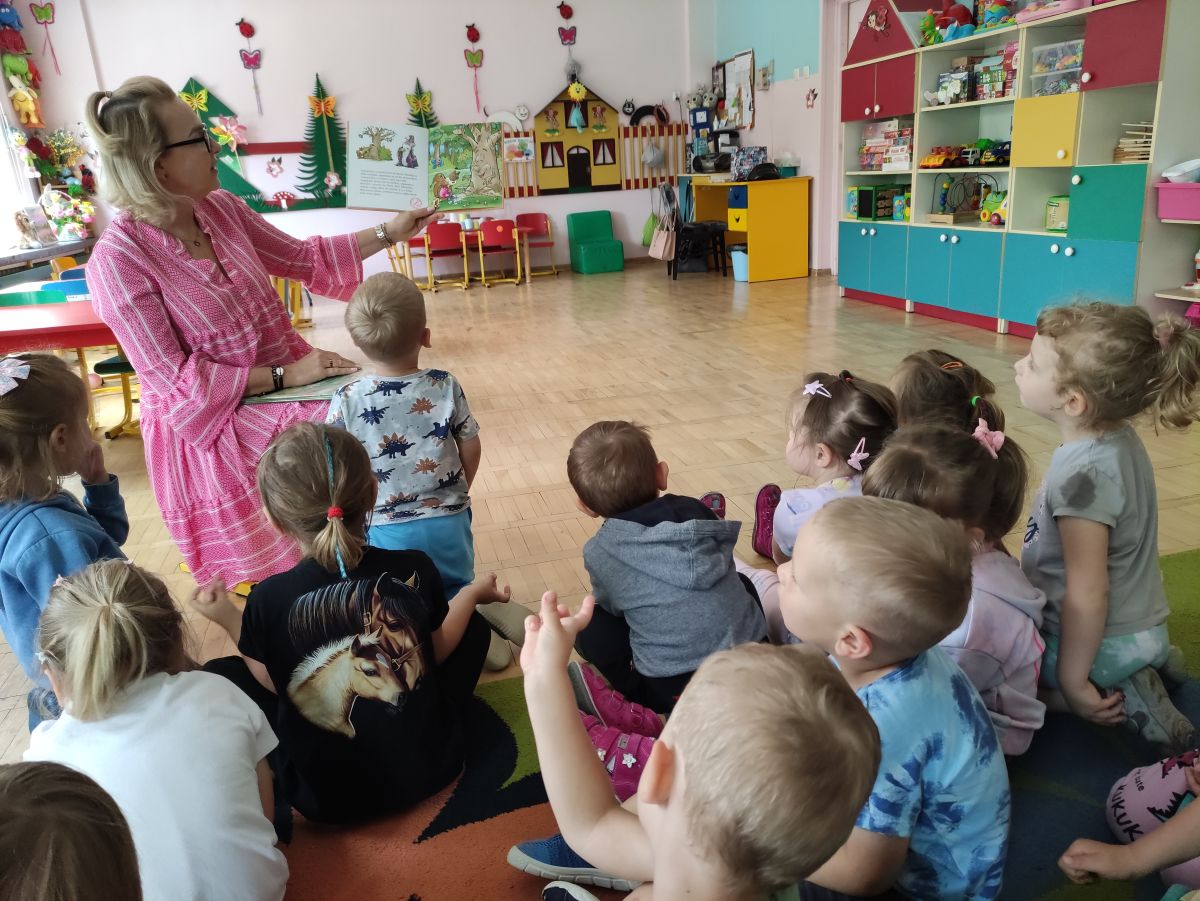 14 czerwca dzieci z grupy Biedronek gościły w swojej sali Panią Ewę z pobliskiej Biblioteki Miejskiej Publicznej. Bibliotekarka w ramach Ogólnopolskiej Akcji Cała Polska Czyta Dzieciom przeczytała książkę z serii "Czarodziej Leonard i stary dąb". Przedszkolaki z dużym zainteresowaniem wysłuchały przygody drzewa i zrozumiały jaką moc mają słowa: dziękuję, przepraszam...