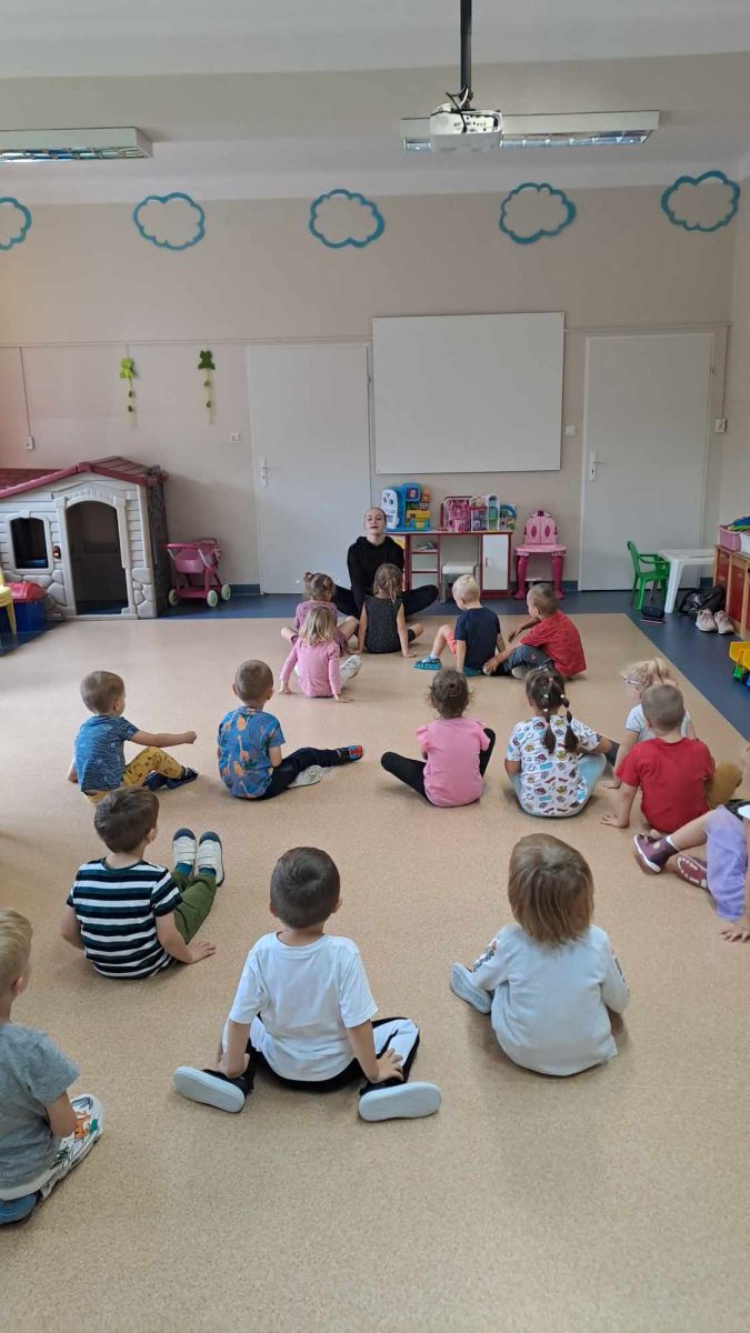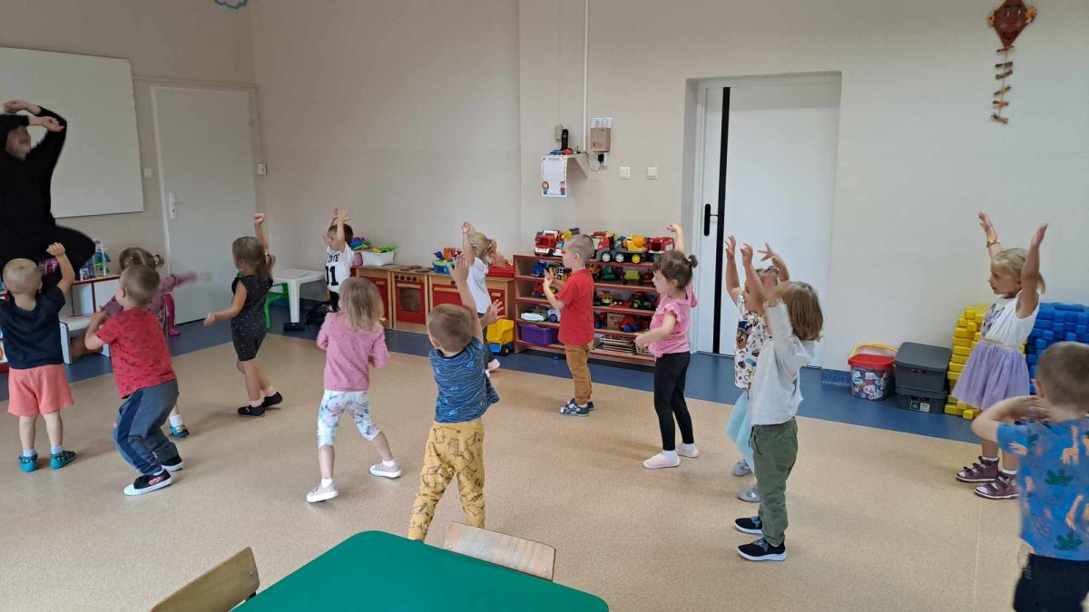 Dnia 14.09.2023 r. odbyły się w naszym Przedszkolu pokazowe zajęcia taneczne dla dzieci z wszystkich grup poza grupą Biedronek. Zajęcia prowadziła instruktorka z Centrum Inicjatyw Artystycznych w Kielcach. Zajęcia taneczne to doskonała zabawa tańcem i ruchem, które kształtują pewność siebie, uczą otwartości i współdziałania w grupie.