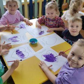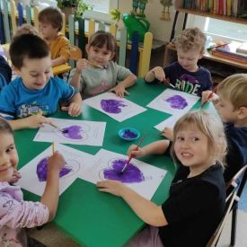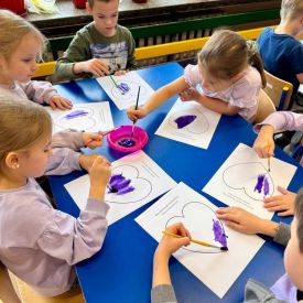 18 listopada nasze przedszkole wzięło udział w akcji edukacyjno-zdrowotnej #fioletowelove2024 z okazji Światowego Dnia Wcześniaka. Jest to wyjątkowa okazja, by pokazać wsparcie najmłodszym bohaterom - wcześniakom. Dzieci włączając się w „fioletowy dzień” przyszły ubrane na fioletowo. Przedszkolaki wysłuchały wiersza „Kangurek Oli”, który przybliżył im temat wcześniactwa. Dzieci na znak udziału w akcji i okazania wsparcia dla przedwcześnie urodzonych niemowląt, wykonały symboliczny gest i pomalowały serca na kolor fioletowy.