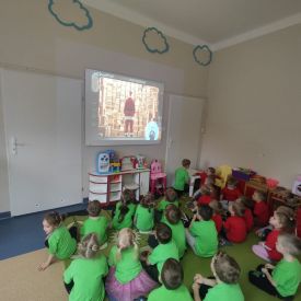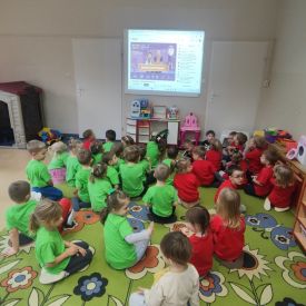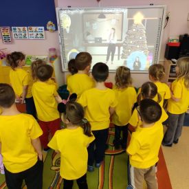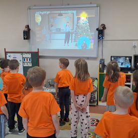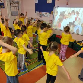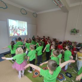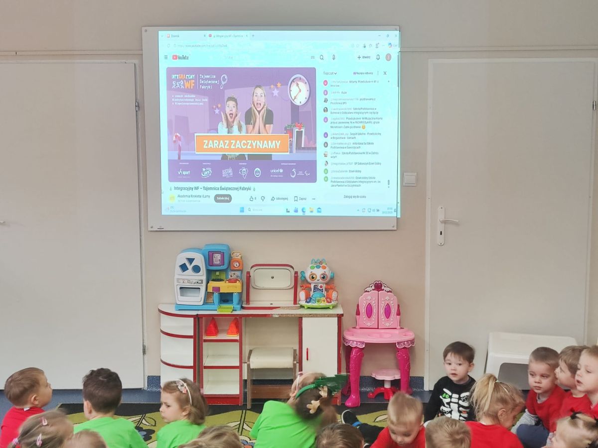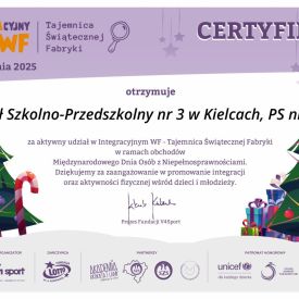 18 grudnia 2025 r. wszystkie grupy przedszkolne uczestniczyły w ogólnopolskim wydarzeniu on-line Integracyjny WF – Tajemnica Świątecznej Fabryki w ramach obchodów Międzynarodowego Dnia Osób z Niepełnosprawnościami.
