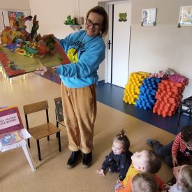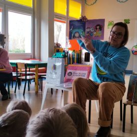 20 lutego najmłodsze grupy odwiedziły panie bibliotekarki z pobliskiej Miejskiej Biblioteki Publicznej. Spotkanie odbyło się w ramach akcji Cała Polska Czyta Dzieciom. Pani Ewa przeczytała dzieciom książkę Anity Głowińskiej "Kicia Kocia w bibliotece" oraz fragmenty wyjątkowych książek 3D o smokach i dinozaurach. Przedszkolakom tak bardzo spodobały się książki z wyłaniającymi się ze stronic dinozaurami i smokami, że obiecały odwiedzić bibliotekę z rodzicami aby wypożyczyć te pozycje.