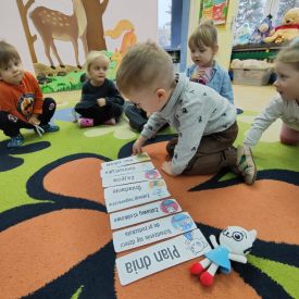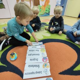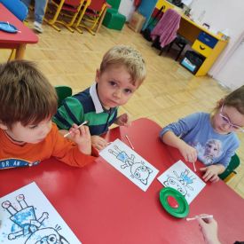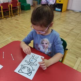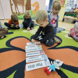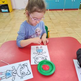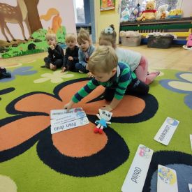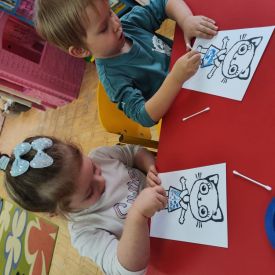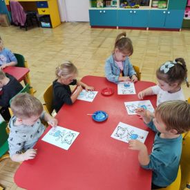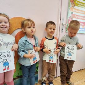 W listopadzie 2024r. dzieci z grupy Biedronek dołączyły do Ogólnopolskiego Projektu "Z Kicią Kocią maluchy zmieniają się w zuchy". Celem projektu jest propagowanie czytelnictwa wśród najmłodszych przedszkolaków, łagodna adaptacja do warunków przedszkolnych poprzez utożsamianie się z bohaterami książkowymi oraz rozwijanie potencjału poznawczego dzieci. Dzieci zapoznały się z maskotką, wysłuchały opowiadania "Kicia Kocia w przedszkolu" oraz wspólnie ułożyły plan dnia. Plan będzie towarzyszył dzieciom podczas ich pobytu w przedszkolu i wyznaczał rytm dnia. Na zakończenie zajęć pomalowały farbami kontur Kici Koci. Przedszkolaki z niecierpliwością czekają na kolejne zadania projektowe.
