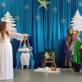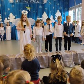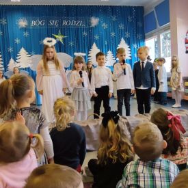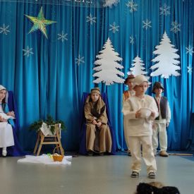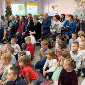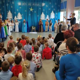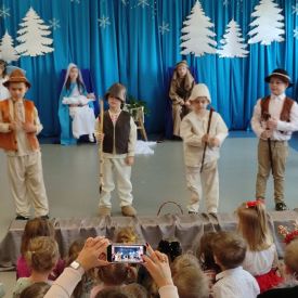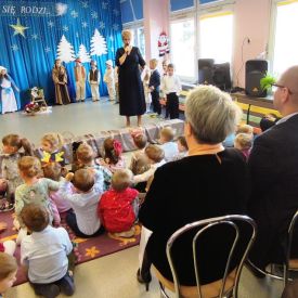 Dzieci z Grupy Pszczółek w przedświąteczny czas zaprezentowały program artystyczny – Jasełka przed rodzicami oraz społecznością przedszkolną. Na uroczystości byli również obecni przedstawiciele Klubu Seniora, Środowiskowego Domu Samopomocy typu C, Miejskiej Biblioteki Publicznej oraz Dyrektor Bartosz Prońko z Wydziału Edukacji i Profilaktyki Zdrowotnej Urzędu Miasta Kielce. Były to chwile, które na długo zostaną w naszej pamięci i będą dobrze wspominane. Małym aktorom należą się pochwały za pokonanie tremy, wczucie się w role, a przede wszystkim za umiejętność działania w grupie dzięki czemu stworzyły wspólnie niesamowity spektakl. Świąteczny nastrój sprawił, że wszyscy obecni na uroczystości włączyli się do wspólnego śpiewania kolęd. Nie zabrakło również życzeń Bożonarodzeniowych i noworocznych oraz podarków, które otrzymali mali aktorzy.