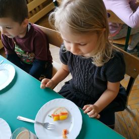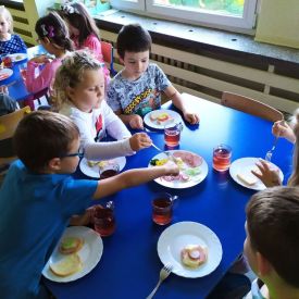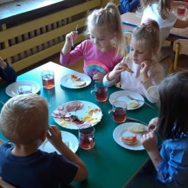 Opublikowano: 06/10/2020 Przedszkolaki z grup starszych w dniu 6 października miały okazję samodzielnie robić sobie śniadanie. Kanapki były kolorowe i znikały w mgnieniu oka.