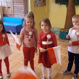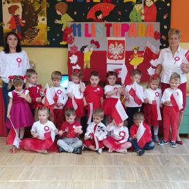 Kształtowanie postaw patriotycznych u dzieci zaczyna się od najmłodszych lat. Nasze Przedszkole podejmuje wiele działań, by zaszczepić wśród przedszkolaków miłość do ojczyzny. Bierzemy m.in. udział w kolejnej edycji Międzynarodowego Projektu Edukacyjnego "PIĘKNA NASZA POLSKA CAŁA", w akcji "SZKOŁA DO HYMNU", uroczyście obchodzimy 11 listopada - ŚWIĘTO NIEPODLEGŁOŚCI. Dzieci w dniu 10 listopada recytowały wiersze patriotyczne, oglądały prezentacje, bajki o Polsce, z dumą prezentowały swoje stroje w barwach narodowych w "pokazach mody", z przejęciem wykonywały symbole narodowe oraz odśpiewały o 11:11 Hymn Polski - "Mazurka Dąbrowskiego". Mimo trudnej sytuacji związanej z pandemią nie możemy zapominać o świętowaniu NIEPODLEGŁOŚCI.