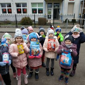 Wielkie podziękowania dzieciom z grupy "Pszczółek" za pomoc w pakowaniu złożonych darów.