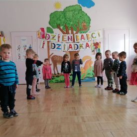 Przedszkolaki w tym roku nie mogły zaprosić Babci i Dziadka do Przedszkola na występy z okazji ich święta ze względu na panującą pandemię.