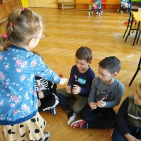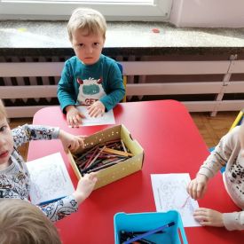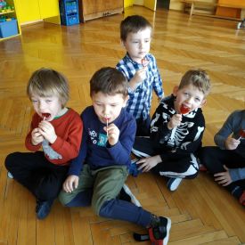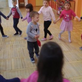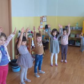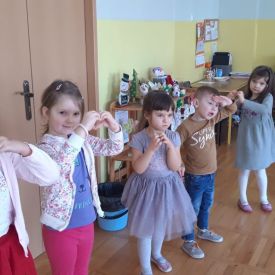 W grupach odbyły się zabawy integracyjne przy skocznych melodiach. Po uśmiechniętych twarzach dzieci widać jaką radość czerpią z przebywania wśród rówieśników.