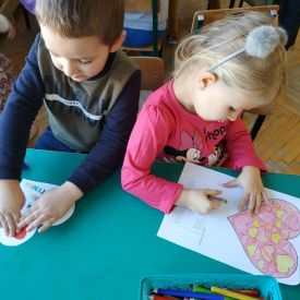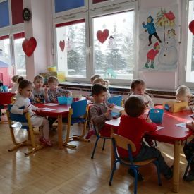 Z okazji WALENTYNEK odbyły się zajęcia poświęcone okazywaniu uczuć. Dzieci w cudowny sposób opisywały czym jest miłość, przyjźń.