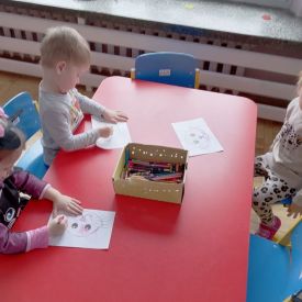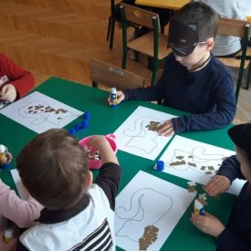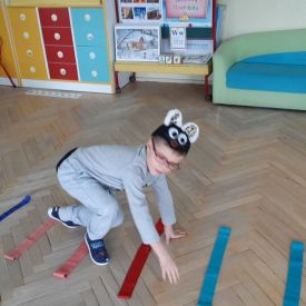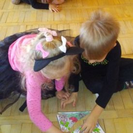 Podczas zabawy przy muzyce relaksacyjnej – wszystkie Koty, kotki, kociaki wybrały się w wielką podróż do krainy Kocimiaukoci. Ten dzień był pełen wrażeń, dzieci wspaniale się bawiły.