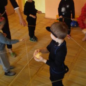 Wielką radość sprawiły przedszkolakom konkursy ,,Złap myszkę”, ,,Picie mleczka” ,,Zwijanie kłębka wełny”.