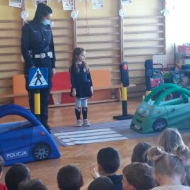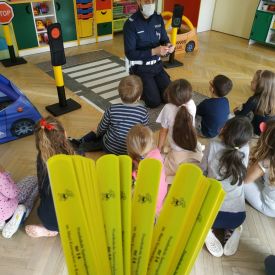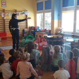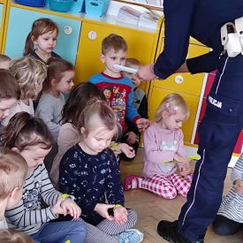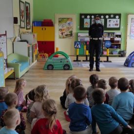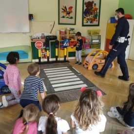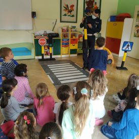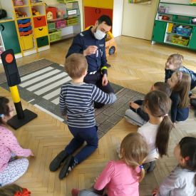 W lutym nasze Przedszkole odwiedzili policjanci z Wydziału Ruchu Drogowego Komendy Miejskiej Policji w Kielcach.
