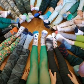 Solidaryzując się z osobami z zespołem Downa każdy założył kolorowe skarpetki nie do pary - przecież to tylko dodatkowy 21 Chromosom.