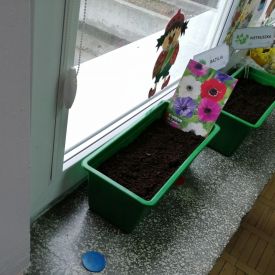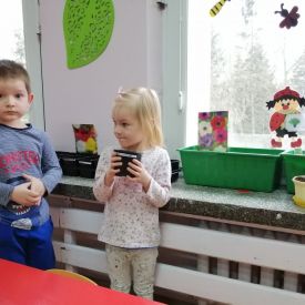 Dzieci z dużym zaangażowaniem przystąpiły do pracy, sadziły kwiaty tj. begonie, zawilce, hiacynty i siały nasiona bazylii, pietruszki.