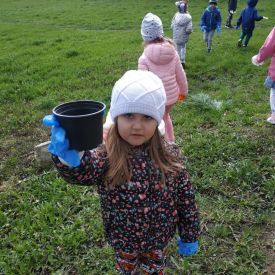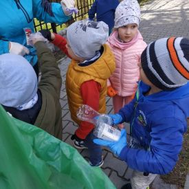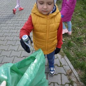 Tradycyjnie co roku włączamy się do akcji "Sprzątania Świata", by od najmłodszych lat uczyć dzieci zasad dbania o środowisko. Przedszkolaki z wielkim entuzjazmem, wyposażone w rękawiczki przyłączyły się do akcji, by posprzątać Ziemię. Młodsze grupy sprzątały nasz ogród przedszkolny, ale starsze dzieci zbierały śmieci w okolicy przedszkola. Dzieci dzielnie zbierały papierki, worki foliowe, kartoniki, butelki i segregowały je do odpowiednich worków. Widząc, jak dużo jest śmieci wokół nas i jak trudno to wszystko posprzątać, przedszkolaki nauczyły się, że czystość otoczenia, w którym przebywamy, zależy tylko od nas. Mamy nadzieję, że będą świecić przykładem w swoich rodzinnych domach i wraz
