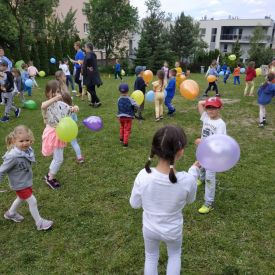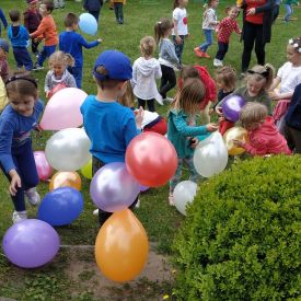 Nauczycielki przygotowały dla swoich Przedszkolaków dużo ciekawych konkurencji sportowych. Nie zabrakło tańców, zabaw z balonami, bańkami mydlanymi no i oczywiście słodkiego poczęstunku i smacznej sałatki owocowej.