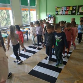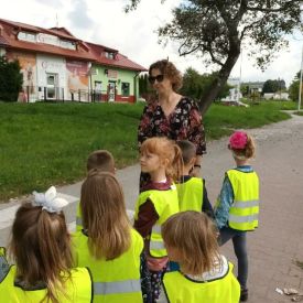 Dzieci zostały zapoznane z elementarnymi zasadami ruchu drogowego. Na pobliskim skrzyżowaniu ubrane w kamizelki odblaskowe, uczyły się poprawnego przechodzenia przez jezdnię.