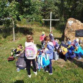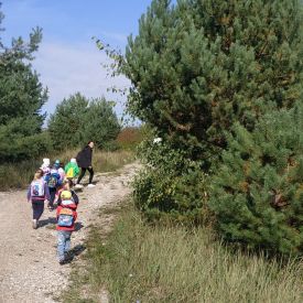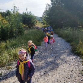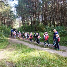 Dzieci dzielnie maszerowały pokonując ok. 5 km. Po drodze obserwowały zmiany zachodzące w przyrodzie jesienią.