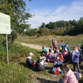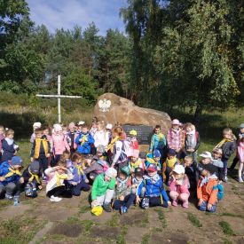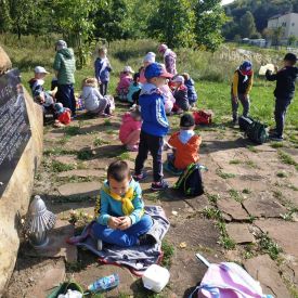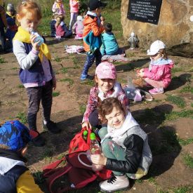 W słoneczny, wrześniowy dzień Przedszkolaki z grupy Motylków, Pszczółek i Sówek pomaszerowały na rajd do opuszczonego kamieniołomu "Grabina".