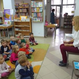 Dnia 8 listopada 2021r. dzieci z grupy Sówek i Żabek odwiedziły Miejską Bibliotekę Publiczną.