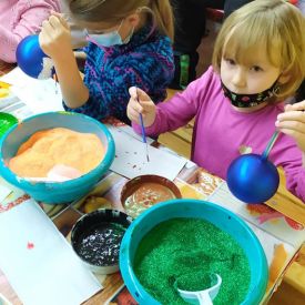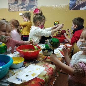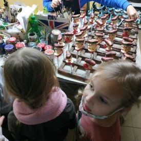 Najważniejszym punktem programu wycieczki podczas zwiedzania Fabryki były warsztaty, gdzie dzieci mogły samodzielnie ozdabiać bombki. Każdy z uczestników otrzymał bańkę, którą samodzielnie malował i ozdabiał.