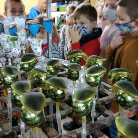 Był to długo oczekiwany dzień przez wszystkie dzieci. Celem wyjazdu było zapoznanie przedszkolaków z tradycyjną metodą ręcznego wykonywania ozdób choinkowych. Wszystkie bombki wykonywane są przez zespół osób o dużych zdolnościach manualnych i wyobraźni plastycznej. Dzieci miały możliwość przyjrzeć się kolejnym etapom produkcji ozdób choinkowych.