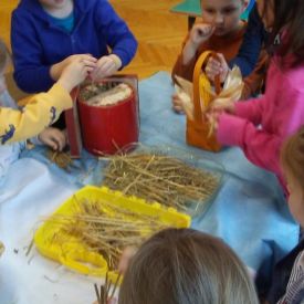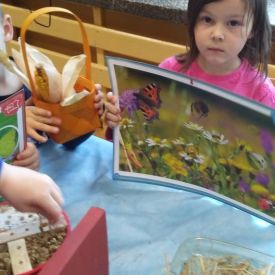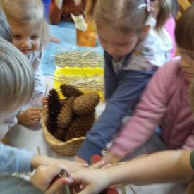 Dlatego ,,Motylki” i ,,Pszczółki” postanowiły przygotować drewniane domki dla owadów . Wydzielone w nich specjalne przegrody wypełniły m.in. słomą, sianem, szyszkami, kukurydzą i kasztanami.