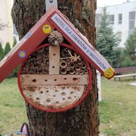 Wykonane ,,hotele” zostały zawieszone w ogrodzie przedszkolnym. Przedszkolaki mają nadzieję, że udało im się stworzyć idealne siedliska dla przyszłych mieszkańców.