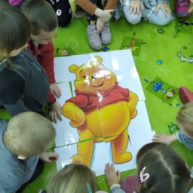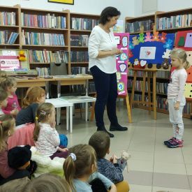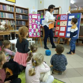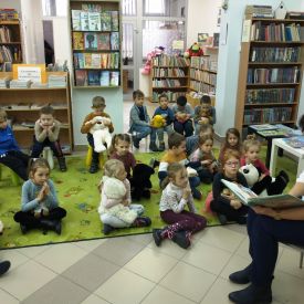 Starszaki z grupy Motyli, Pszczół i Sów zostały zaproszone na obchody Dnia Pluszowego Misia do biblioteki. Panie bibliotekarki przygotowały bardzo ciekawe zajęcia, gdzie głównymi bohaterami były pluszowe misie. Przedszkolaki bardzo chętnie rozmawiały na temat milusińskich przyjaciół, układały puzzle, rozwiązywały zagadki oraz kolorowały portret misia.
