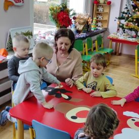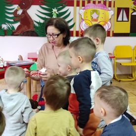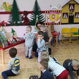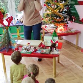 Pani Ewa po raz kolejny odwiedziła nasze przedszkole. Spotkała się z dziećmi z grupy Żabek i Biedronek. Dzieci obejrzały teatrzyk ,,Tupcio Chrupcio", układały puzzle, rozsypanki obrazkowe oraz słuchały bajek: ,, Uśmiechnięty bałwanek", ,, Gdzie jest Mikołaj", ,,Sanie świętego Mikołaja". Spotkanie to wprowadziło wszystkich w świąteczny nastrój pełen magii i oczekiwania na wyjątkowy wieczór, gdzie w blasku świec przy wspólnym stole spotykają się najbliżsi.