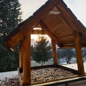 Domki dla ptaków wraz z pożywieniem zostały zamontowane w różnych miejscach naszego ogrodu, na tarasach i parapetach okien przy każdej grupie.