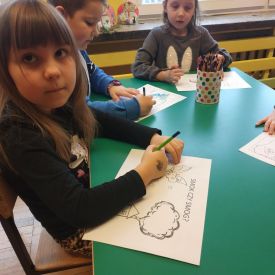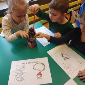 pt. Dymy, Smok czy smog. Uświadomiły sobie co to jest smog? Jakie czynniki sprzyjają powstaniu smogu (zanieczyszczenie powietrza wywołane działalnością człowieka, znaczenie zamglenia, brak wiatru- cisza wiatrowa). Poznały też różnicę między smogiem a smokiem.