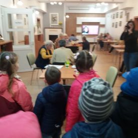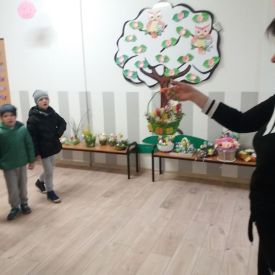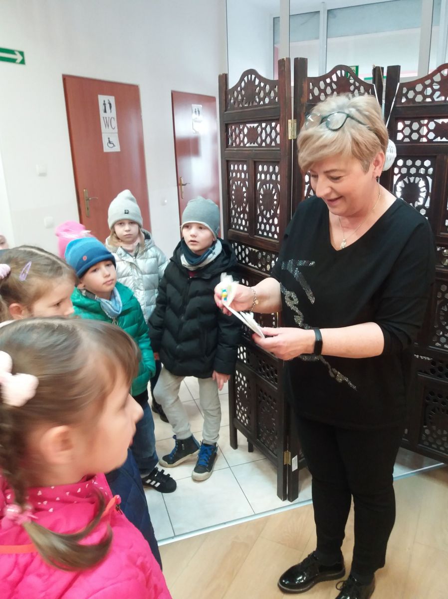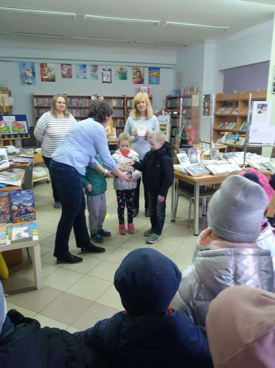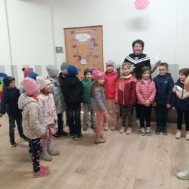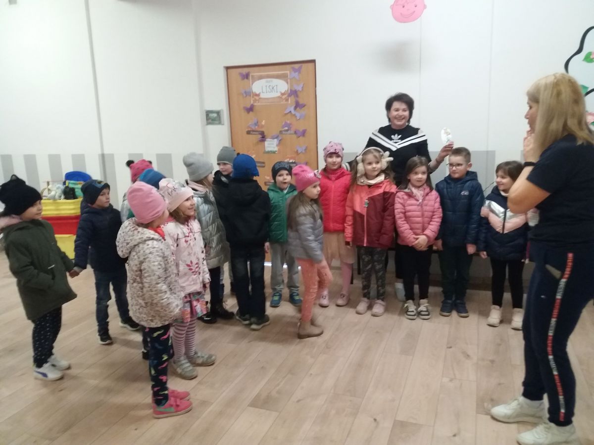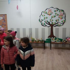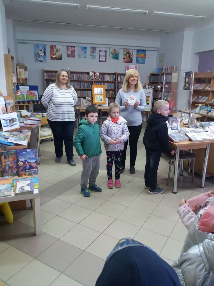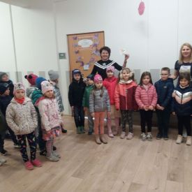 W przedświąteczny wtorek dzieci z grupy Sówek odwiedziły zaprzyjaźnione placówki na naszym osiedlu. Były to Miejska Biblioteka Publiczna Filia nr 2 ,Oddziały Przedszkole przy Szkole Podstawowej Nr 31 z Oddziałami Integracyjnymi im. Henryka Sienkiewicza oraz Środowiskowy Dom Samopomocy typu C. Wszystkie te placówki mieszczą się przy ul. Krzemionkowej 1 w Kielcach. Wraz z nauczycielem przedszkolaki złożyły wielkanocne życzenia oraz wręczyły kartki świąteczne. Była to niezapowiedziana wizyta, więc tym bardziej zaskoczyła i ucieszyła odwiedzonych. W podziękowaniu dzieci otrzymały słodycze oraz piękny koszyczek wielkanocny.
