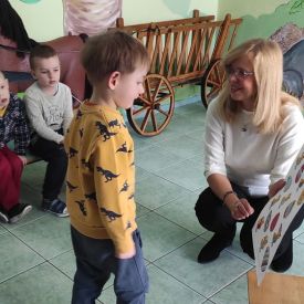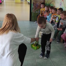 ,, Marysia i wielkanocne jajka". Dzieci wykazały się niezwykłą spostrzegawczością podczas zabawy ,,Koszykowe poszukiwania". Z dużym zaangażowaniem rywalizowały podczas biegu z jajkiem. Dziękujemy za kolejne ciekawe zajęcia.