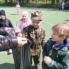 W dniu 28.04.2022 r. przedszkolaki wzięły udział w sprzątaniu terenu wokół naszego Przedszkola w ramach Światowego Dnia Ziemi. Dzieci zostały wyposażone w jednorazowe rękawiczki, worki na śmieci i wyruszyli na sprzątanie świata. Dzięki zaangażowaniu i aktywnej postawie udało się zebrać dwa worki śmieci, które zostały złożone do odpowiednich pojemników.