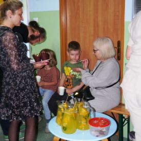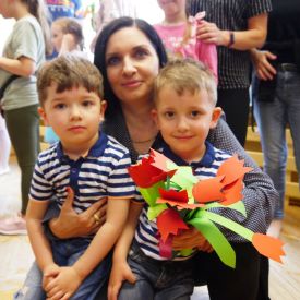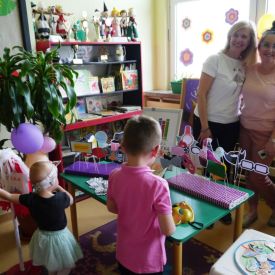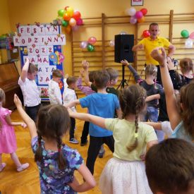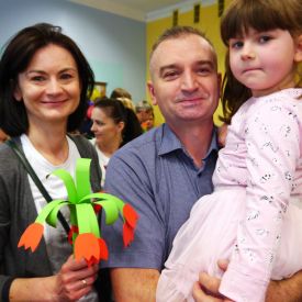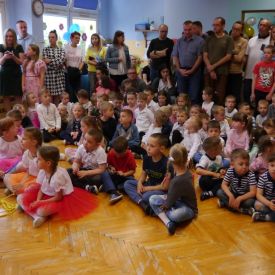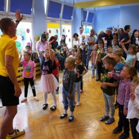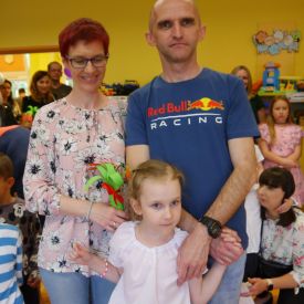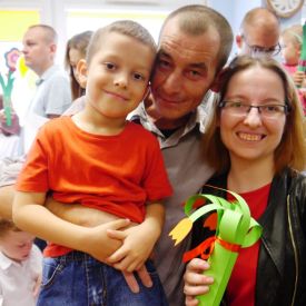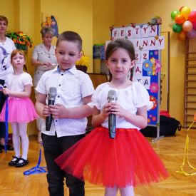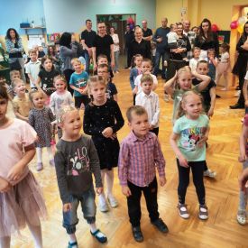 Po 5 latach przerwy ponownie zorganizowaliśmy tradycyjny festyn rodzinny. Deszczowa pogoda troszkę pokrzyżowała nam plany. Impreza z ogrodu musiała przenieść się do budynku przedszkola. Mimo to wszyscy świetnie się bawili. Uśmiech nie schodził dzieciom i rodzicom z twarzy. Festyn rodzinny rozpoczęła Pani dyrektor, witając wszystkich uczestników. Następnie goście mogli obejrzeć krótki występ przedszkolaków, którego finałem było odśpiewanie piosenki dla mamy i taty pt. "Puk, puk serce bije" oraz wręczenie bukietów i dyplomów dla cudownych rodziców. Podczas imprezy Pani dyrektor wręczyła rodzicom zaangażowanym w życie przedszkola podziękowania. Po tej oficjalnej części była już tylko wspaniała zabawa z niezawodnym Panem Mateuszem z Agencji Artystycznej Mat-Art oraz degustacja ciast, orzeźwiającej lemoniady, kiełbasek, kaszanek, chleba ze smalcem i ogórkiem.