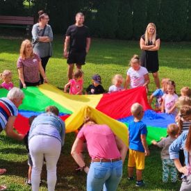 Dzieci w obecności rodziców mogły poznać środowisko przedszkolne, zdobyć nowe doświadczenia społeczne oraz oswoić się z nowym miejscem. Zabawy na świeżym powietrzu sprawiły dzieciom wiele radości, chętnie korzystały z możliwości zabaw w ogrodzie przedszkolnym oraz zabawkami w sali przedszkolnej.