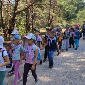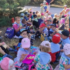 W czwartek 8 września przedszkolaki z grupy Żabek, Motylków, Pszczółek i Sówek wyruszyły na rajd w okolice Bruszni.