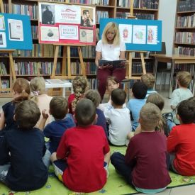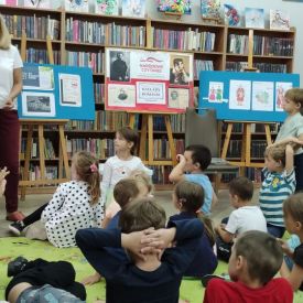 Pani Iwonka przygotowała zajęcia w ramach Narodowego Czytania - polskiej akcji społecznej propagującej znajomość literatury narodowej. Bibliotekarka w przystępny sposób przybliżyła dzieciom postać Adama Mickiewicza - bohatera tegorocznej akcji.
