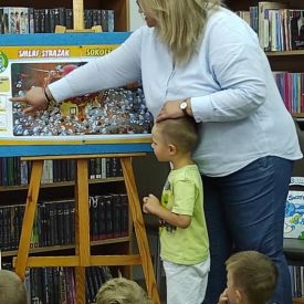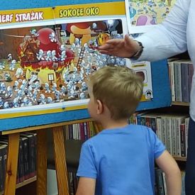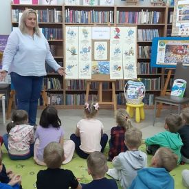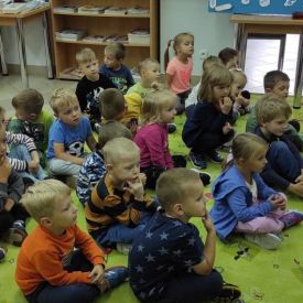 Każdy kolejny dzień w przedszkolu dostarcza dzieciom nowych, pozytywnych wrażeń. Tak też było w piątek 9.09.2022 r. ,,Motylki” i ,,Pszczółki” wybrały się do biblioteki zamienionej w krainę Smerfów. Zajęcia rozpoczęły się czytaniem przygód o Smerfach z których dzieci dowiedziały się, że Smerfy są niebieskie, o budowie ciała podobnej do człowieka, „wzrostu trzech jabłek”,