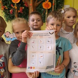 Grupa Pszczółek i Sówek w formie tygodniowego wyzwania tj. od 26 do 30 września 2022 r. rejestrowała w „Tygodniowym Planie Zadań Sportowych” codzienne ćwiczenia w ramach realizacji akcji „Zdrowo i Sportowo” oraz aktywnego promowania Europejskiego Tygodnia Sportu. Codziennie przedszkolaki losowały dowolną aktywność fizyczną i z wielką ochotą wykonywały dane ćwiczenia. Dzieci upewniły się jak ważna jest aktywność ruchowa, która